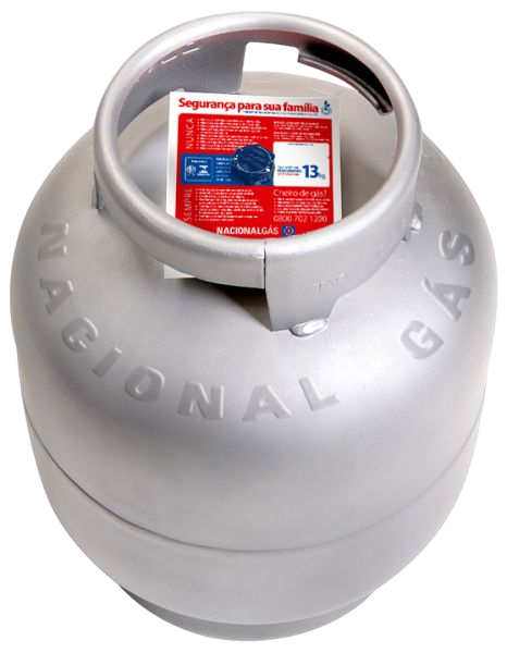 Botijão de GLP com 13 kg, solução doméstica versátil para fogões, aquecedores e lareiras, entregando chama estável e eficiente.
